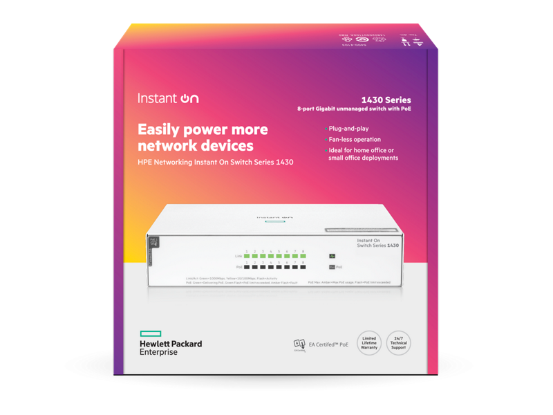 Switch no administrado, plug-and-play y económico, ideal para pequeñas empresas u oficinas que requieren una conectividad de red simple y confiable sin configuraciones complejas. Cuenta con 8 puertos Gigabit RJ-45 con PoE Clase 4 y un presupuesto de energía de 64 W para alimentar dispositivos como puntos de acceso, cámaras IP o teléfonos VoIP, además de ofrecer capacidad de conmutación de 16 Gbps y un rendimiento de 11,90 Mpps para un tráfico de red eficiente. Su funcionamiento es totalmente automático, incluye adaptador de alimentación externa.
