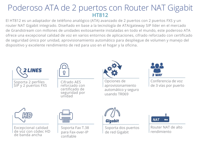 Adaptador Teléfono HT812 2RJ45 Gigabits 2FXS con Router NAT