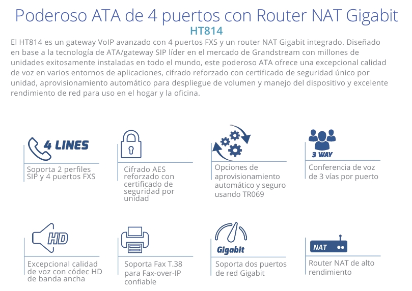 Adaptador Teléfono 4 FXS Con Router NAT Gigabit