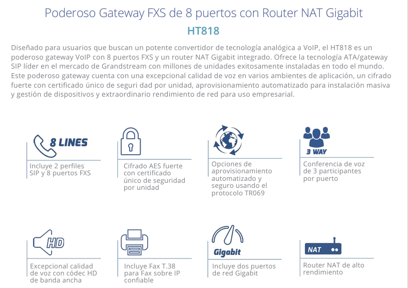 Gateway VoIP con 8 puertos FXS y un router NAT Gigabit integrado
